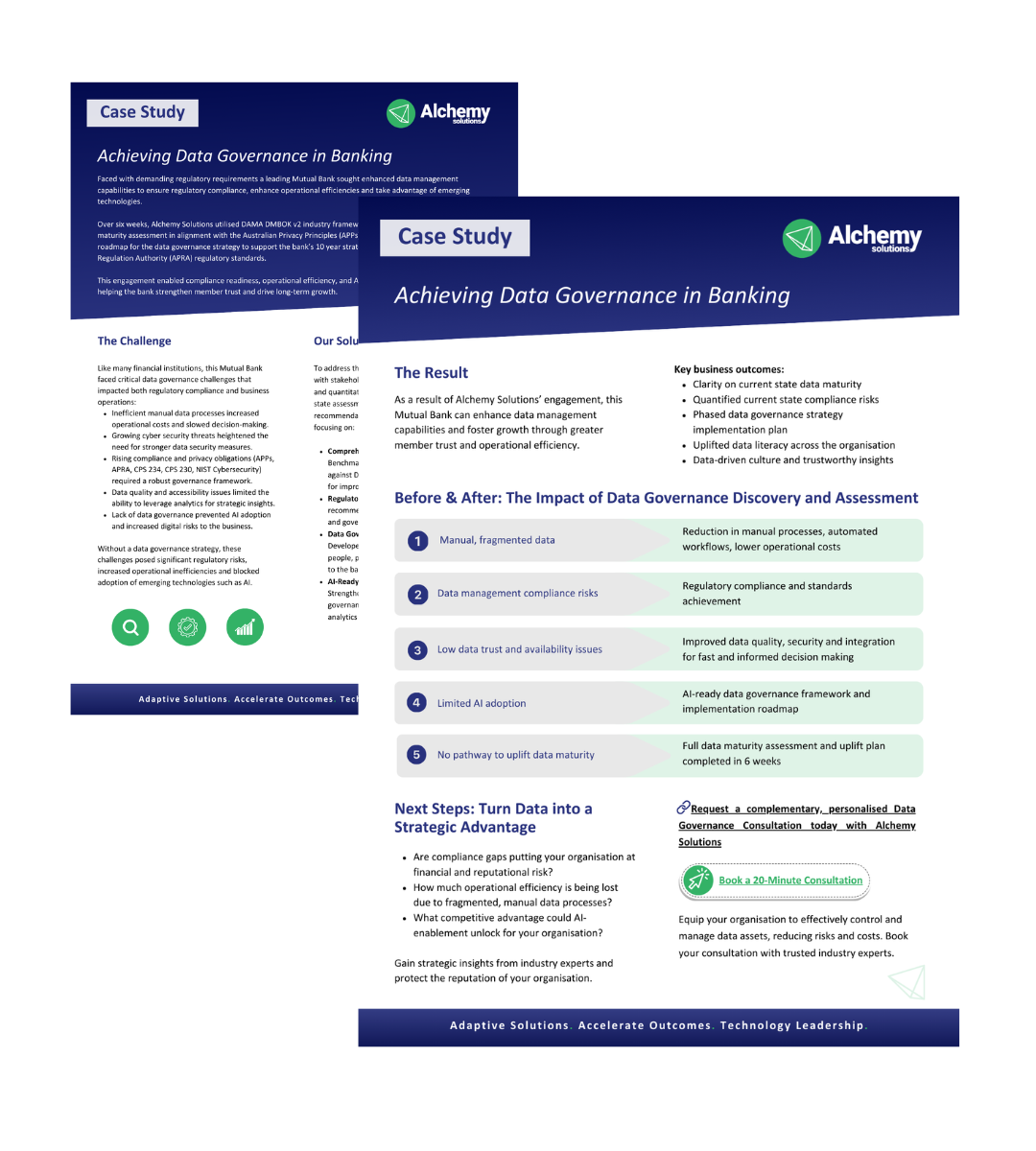 Unlock the exact framework one of Australia’s top mutual banks used to fix compliance risks, clean up fragmented data, and build AI-ready governance in 6 weeks.
